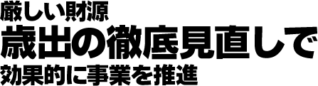 平成15年度の予算編成では、これまでの積み上げ式の予算編成を改め、「総額管理枠配分方式」を導入。これは、各部局ごとに財源を配分し、それぞれの部局が、新たな行政評価システムである「業務棚卸表」(※1)に基づき全ての事業について徹底した見直しを行った上で、効果的で優先度の高い事業に重点を置くものです。その結果、165件の事業について見直し(もしくは廃止)を行い、約8億円の経費節減を図る一方で、66件の新規事業を実施することとなりました。