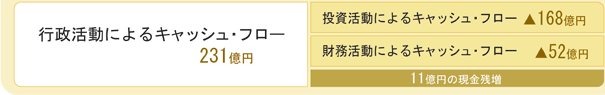 | キャッシュ・フロー計算書は、1年間にどれだけの資金が入ったり出ていったりしたかを、行政活動、投資活動、財務活動という3つの区分で表しています。道路や建物などをつくる投資活動および借金の借入や返済の財務活動の収支はいずれも赤字となっており、この不足分を埋めるため市税などをもとにした日常の行政活動の黒字で対応したことがわかります。 |