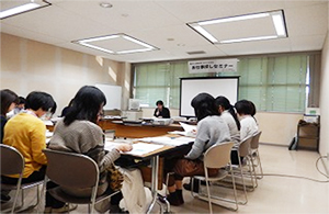 料理の前には男女共同参画についてちょこっとお勉強。 |