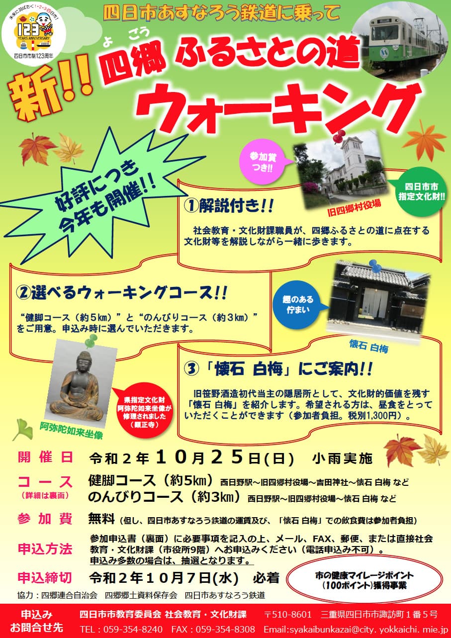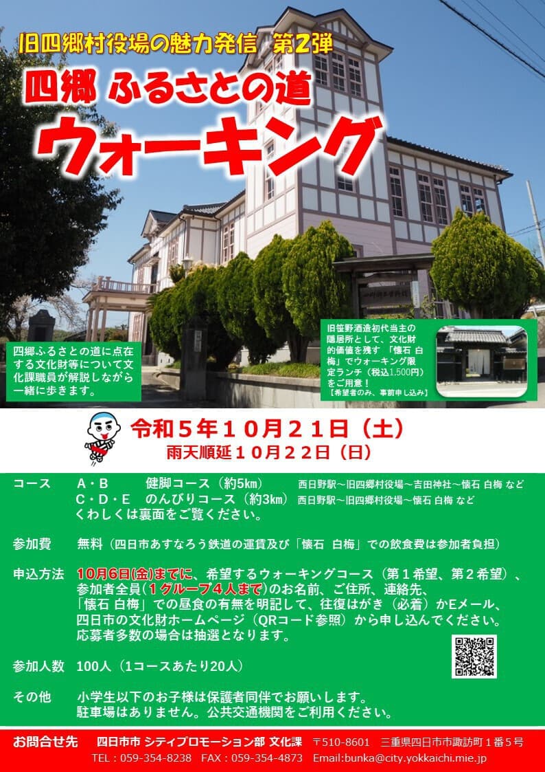 〒510-8601文化課「四郷ふるさとの道ウォーキング」係