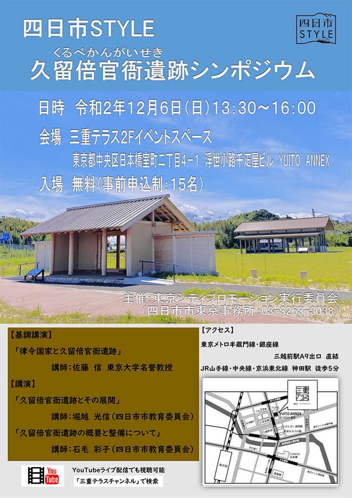 今回の四日市STYLEでは、くるべ古代歴史公園の整備が完了し、11月1日にグランドオープンした、「久留倍官衙遺跡公園」について、多くの方々にその魅力を発信するため「久留倍官衙遺跡シンポジウム」を開催します。