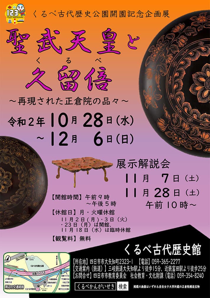 聖武天皇とゆかりの深い東大寺正倉院宝物の再現品(奈良女子大学所蔵)を展示します