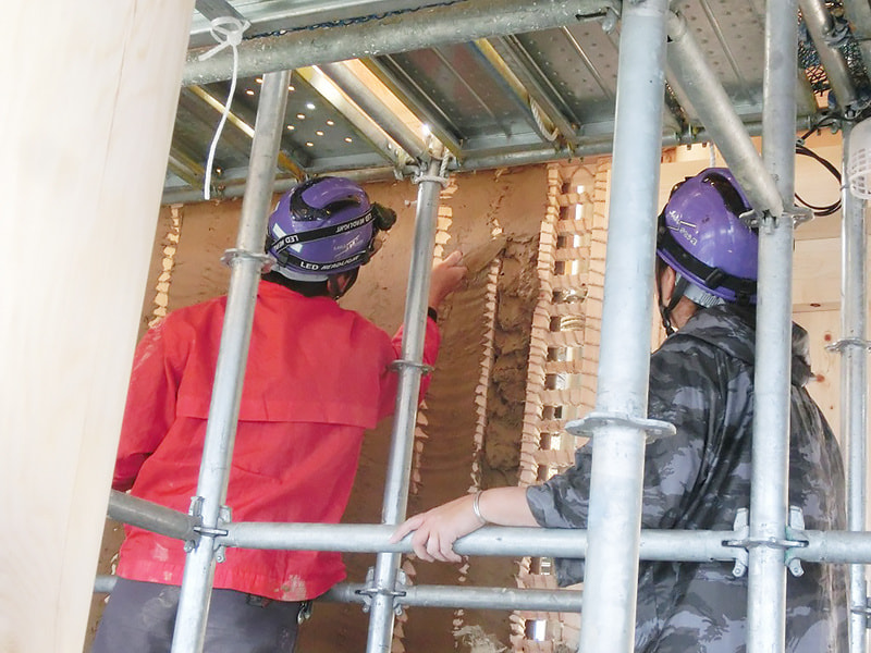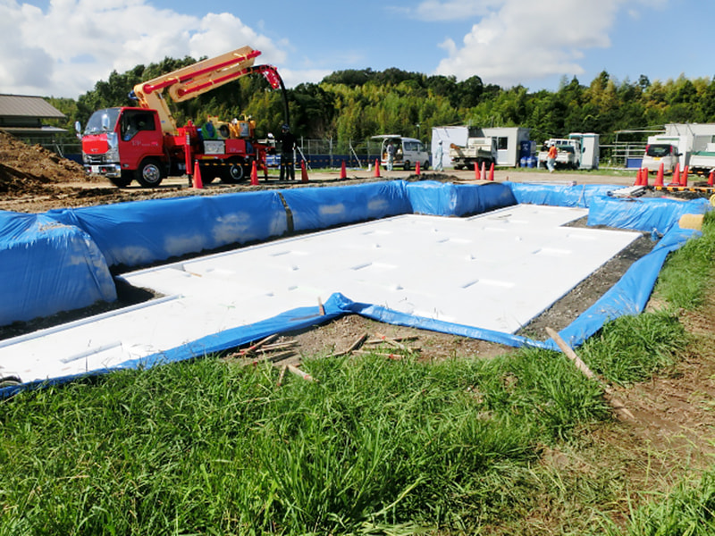 ここでは、直径30㎝程度、高さ40㎝程度の円柱を建てて、柱を表示しています。大型建物1は、円柱を抜き取ることができるようになっています。