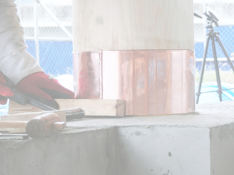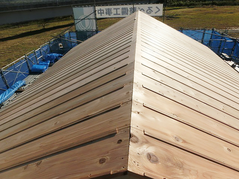 古代の建物を復元したわけではないので、復元建物である八脚門と区別するため、現代の素材で、現代の工法で建設しました。