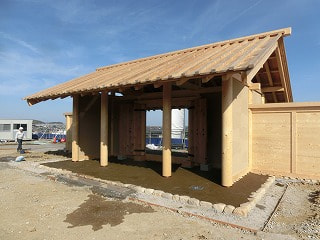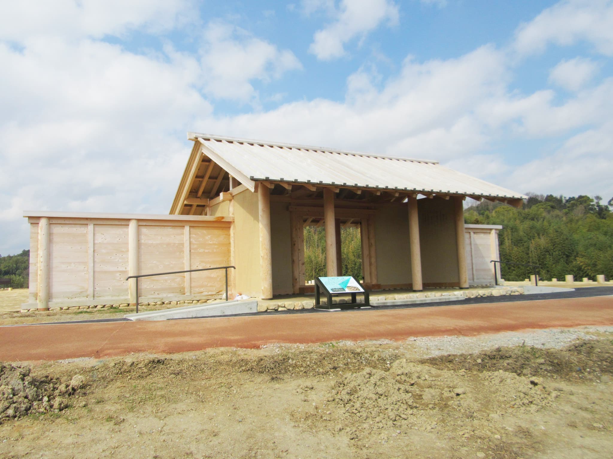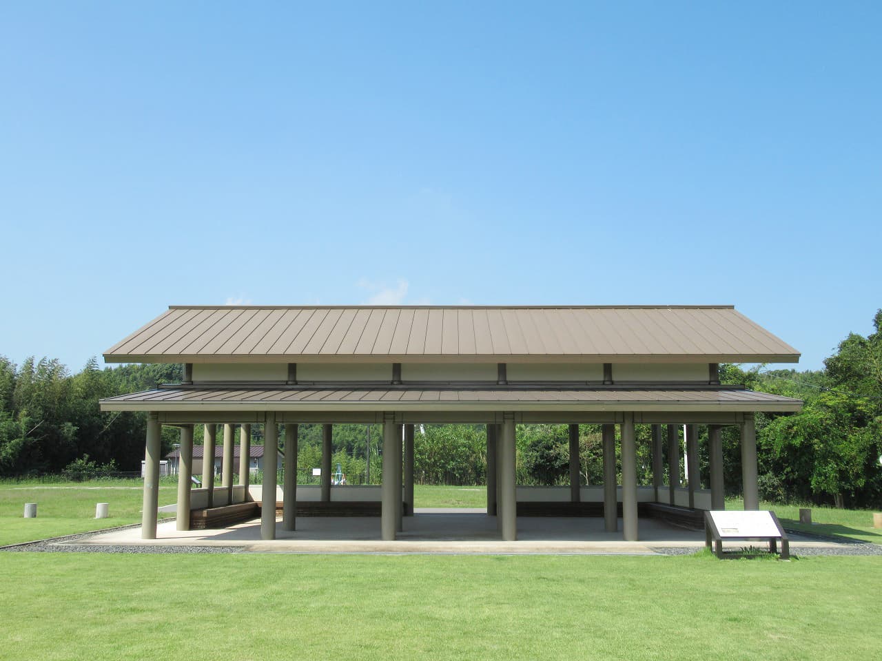 発掘調査でわかった正殿の遺構の真上に、同じ柱の数で、同じ面積の建物を建てています。また、元々の正殿には、東側には廂が付けられていましたので、廂も表現し、古代風の建物になっています。