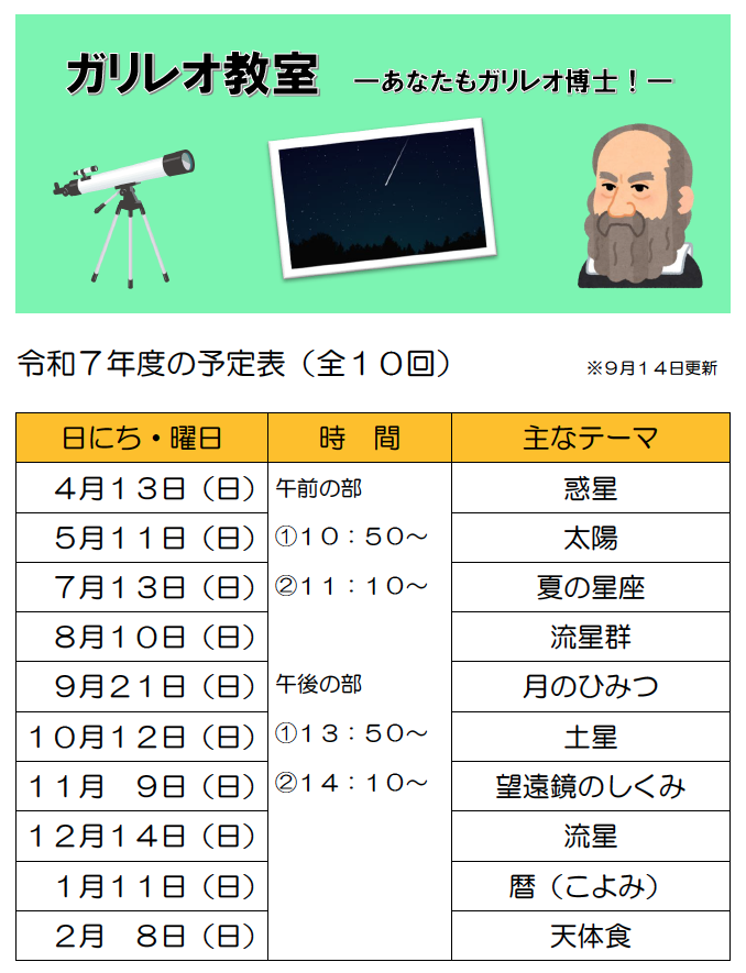 毎月第2日曜日に、博物館5階コズミックラウンジにて天文ボランティアによる天文教室を行っています。タイムリーなテーマに合わせて、天文ボランティアがわかりやすくお話しします。