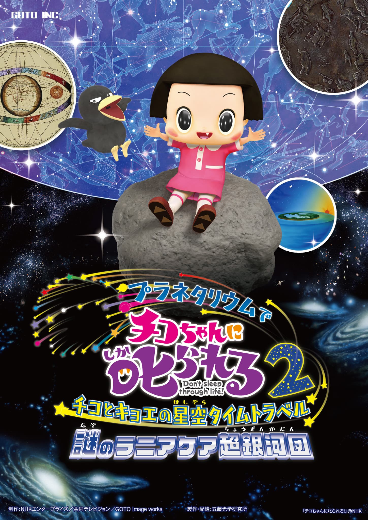 ファミリー番組に戻る ※過去の番組のチラシがご覧いただけます。 令和7年度(2025年度) プラネタリウムでチコちゃんに叱られる!2 チコとキョエの星空タイムトラベル 謎のラニアケア超銀河団 9月9日(火)~11月30日(日) プラネタリウム ドラえもん 宇宙の模型 令和7年6月10日(火)~令和7年8月31日(日) 名探偵コナン 灼熱の銀河鉄道(ギャラクシーレイルロード)令和7年3月1日(土)~令和7年6月1日(日) 令和6年度(2024年度) プラネタリウムでチコちゃんに叱られる! チコとキョエの宇宙大冒険!無知との遭遇 3月12日(火)~6月2日(日) ゲゲゲの鬼太郎 河童のテラフォーミング 6月11日(火)~9月1日(日) かいけつゾロリ~うちゅうの勇者たち~ 9月10日(火)~10月31日(木) 令和5年度(2023年度) 宇宙なんちゃら こてつくん プラネタリウム 令和5年12月12日(火)~ 令和6年3月3日(日) 忍たま乱太郎の宇宙大冒険 withコズミックフロント☆NEXT 土星めぐりでシャッターチャンスの段 令和5年9月12日(火)~ 令和5年12月3日(日) 発見! 南極に恐竜がいた! 令和5年6月13日(火)~ 令和5年9月3日(日) 令和4年度(2022年度) クレヨンしんちゃん 宇宙からの来訪者 カスカベ大パニック 令和5年2月11日(土・祝)〜 令和5年6月4日(日) 忍たま乱太郎の宇宙大冒険with コズミックフロント☆NEXT やっぱり地球は回っていた!の段 6月14日(火)~8月31日(水) 令和3年度(2021年度) ハローキティ トゥインクル☆ムーンライト 令和4年3月23日(水)〜 令和4年6月5日(日) ポケットモンスター オーロラからのメッセージ 令和3年12月14日(火)~ 令和4年2月27日(日) イナズマデリバリー バイザウェイの宇宙旅行?!-ブラックホールとの遭遇(そうぐう)- 9月14日(火)〜12月5日(日) 忍たま乱太郎の宇宙大冒険 with コズミックフロント☆NEXT 月ウサギがクレーターをかけるの段 6月15日(火)〜9月5日(日) 秘密結社鷹の爪THE PLANETARIUM〜ブラブラ!ブラックホールのナゾ〜 3月9日(火)〜6月6日(日) 令和2年度(2020年度) かいけつゾロリ〜ZZ(ダブルゼット)のひみつ〜 3月10日(火)〜6月7日(日) 名探偵コナン— 探偵たちの星月夜(スターリーナイト)— 6月16日(火)〜 9月6日(日) ごん / GON,THE LITTLE FOX 9月15日(火)〜 11月1日(日) ムーミン谷のオーロラ 11月3日(火・祝)〜11月15日(日) かいけつゾロリ〜ZZ(ダブルゼット)のひみつ〜 11月17日(火)〜11月729日(日) クレヨンしんちゃん 星空と学校の七不思議だゾ! 12月1日(火)~ 12月13日(日) ポラリス 令和2年12月22日(火)〜 令和3年2月28日(日) 令和元年度(2019年度) ぼのぼの 宇宙から来たともだち 3月16日(土)〜6月2日(日) プラネタリウム ちびまる子ちゃん それでも地球はまわっている 5月15日(土)〜9月1日(日) ムーミン谷のオーロラ 9月14日(土)〜12月15日(日) プラネタリウム はなかっぱ 花さけ!パッカ〜ん 宇宙旅行 令和元年12月21日(土)~ 令和2年3月1日(日) 平成30年度(2018年度) 秘密結社鷹の爪 THE PLANETARIUM〜ジュラジュラ!ジュラシックトラベル〜 3月17日(土)~ 6月3日(日) クレヨンしんちゃん 星空と学校の七不思議だゾ! 6月16日(土)~ 9月2日(日) ポケットモンスター サン&ムーン プラネタリウム 9月15日(土)~12月9日(日) Space Dreamers 宇宙兄弟 南波六太がやってきた! 平成30年12月22日(土)~平成31年3月10日(日) 平成29年度(2017年度) かいけつゾロリ うちゅうの勇者たち 3月18日(土)〜6月4日(日) ドラえもん 宇宙ふしぎ大探検3 ~地球のふしぎ~ 6月17日(土)〜9月10日(日) 忍たま乱太郎の宇宙大冒険 with コズミックフロント★NEXT ~太陽系のお友だちの段~ 9月16日(土)〜12月17日(日) ノーマン・ザ・スノーマン ~北の国のオーロラ~ 平成30年1月2日(火)〜3月11日(日) 平成28年度(2016年度) プラネタリウム ちびまる子ちゃん 〜星にねがいを〜 3月19日(土)~6月5日(日) 妖怪ウォッチ プラネタリウムは星と妖怪がいっぱい! 6月18日(土)~9月4日(日) それいけ!アンパンマン~ちびおおかみと月のふしぎ~ 12月23日(金・祝)~3月12日(日) 星の王子さま 12月19日(土)〜3月13日(日) 平成27年度(2015年度) ドラえもん 宇宙ふしぎ大探検2 〜太陽系のひみつ〜 3月21日(土・祝)〜6月7日(日) 奇跡の地球のふしぎな森 〜てんとう虫のドロシーの課外授業〜 6月13日(土)〜9月13日(日) ポケットモンスターXY 宇宙(そら)の破片 9月19日(土)〜12月13日(日) おじゃる丸 銀河がマロを呼んでいる -ふたりのねがい星- 12月19日(土)〜3月13日(日)