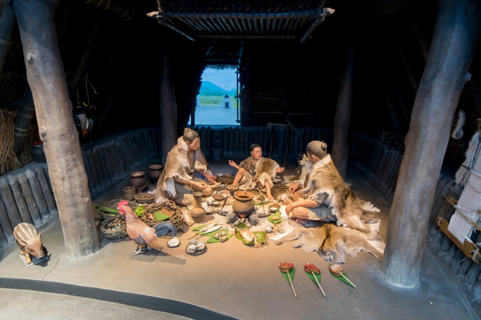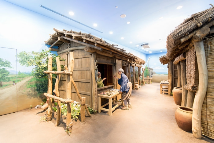 時空街道には、弥生時代の竪穴住居、室町時代の四日の市、江戸時代の四日市宿が、それぞれ原寸大で再現されています。歴史をたどり、これからの四日市のまちと、わたしたちの未来を考える旅に出かけることにしましょう。
