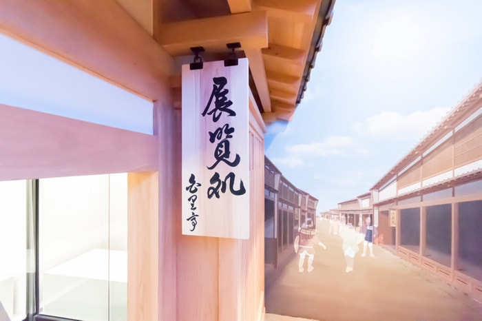 時空街道の四日市宿の中には「展覧処 白里亭」があります。ここは、学習支援展示や館蔵品の特別陳列をおこなう小さな展示室です。