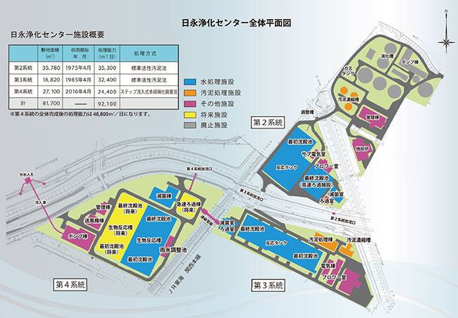 除害施設で有害物質を取り除いた後、下水道管へ流されます。 - 中継ポンプ場