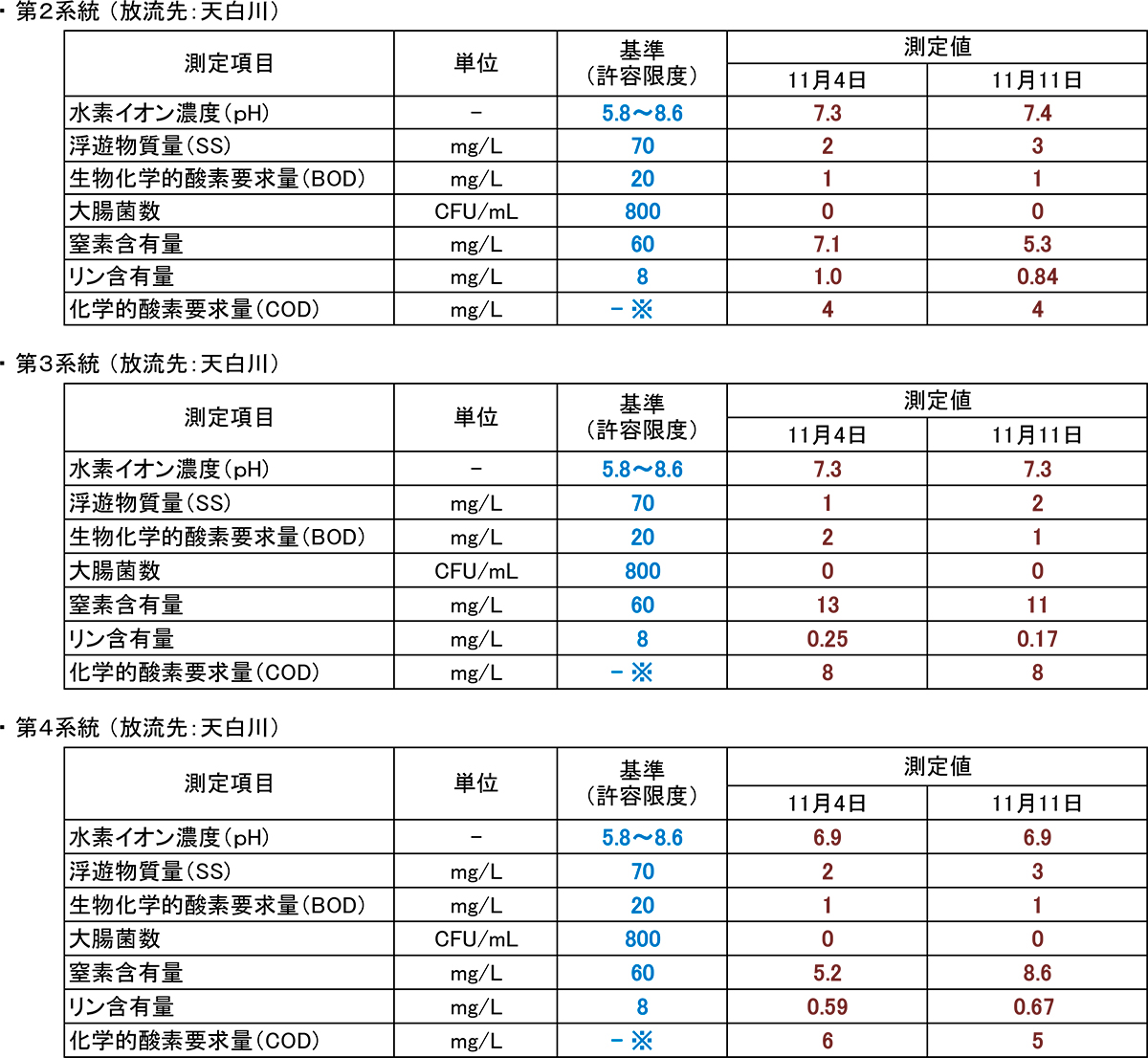 令和7年11月の放流水質