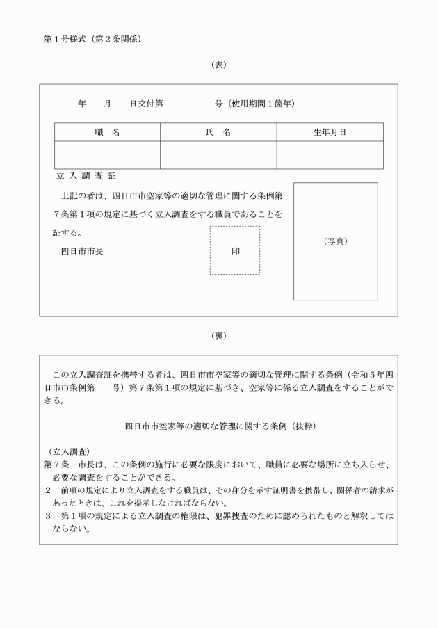 第1条 この規則は、四日市市空家等の適切な管理に関する条例(平成26年四日市市条例第14号。以下「条例」という。)の施行に関し、必要な事項を定めるものとする。