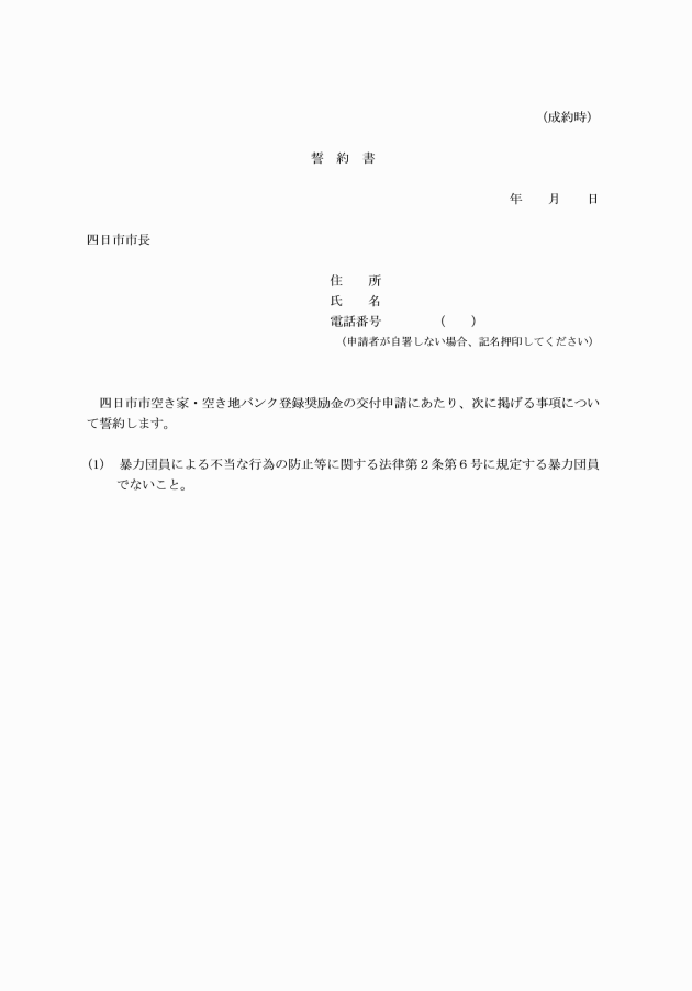(1) 四日市市空き家・空き地バンク登録完了通知書の写し(登録時のみ)