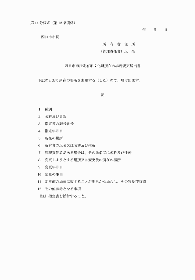 (3) 条例第16条第1項の規定による許可を受けて行う現状の変更又は保存に影響を及ぼす行為のための所在の場所の変更