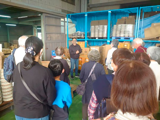 - 参加者の皆さんは地場産品の製造工程に高い関心をお持ちで、各訪問先ではご担当者様の話に熱心に耳を傾け、積極的に質問をして、楽しく学んでいらっしゃる様子でした。参加者の皆さんからは、「地元の知らない企業を知ることができて大変良かった。」「個人では訪問できない会社に行けて楽しかった。」「勉強になった。」などの声をいただきました。