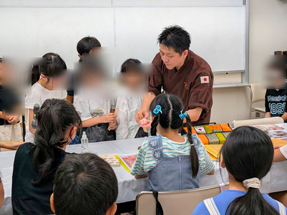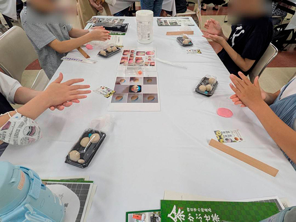 前半の和菓子づくり体験では、撫子とこにゅうどうくんをイメージした和菓子を作りました。