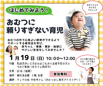 おむつの外で心地よい排泄ができるようサポートする育児法を学び、